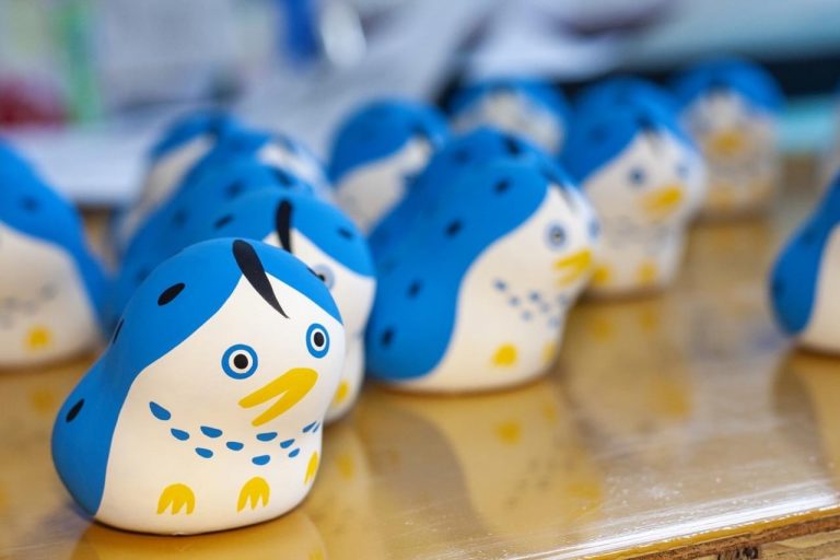 江戸時代から続く天草の伝統工芸品「天草土人形」を基にデザインした「下浦土玩具」は、縁起物として人気を集めています。お好きな形の土玩具を選んで絵付け体験を楽しんで。