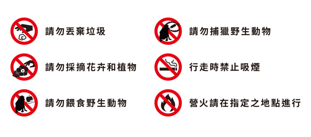 為了確保更多的人能夠享受公園的美景,請注意保護國家公園內的自然環境,並遵守以下規則。